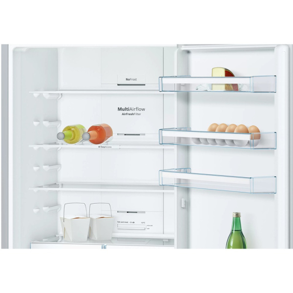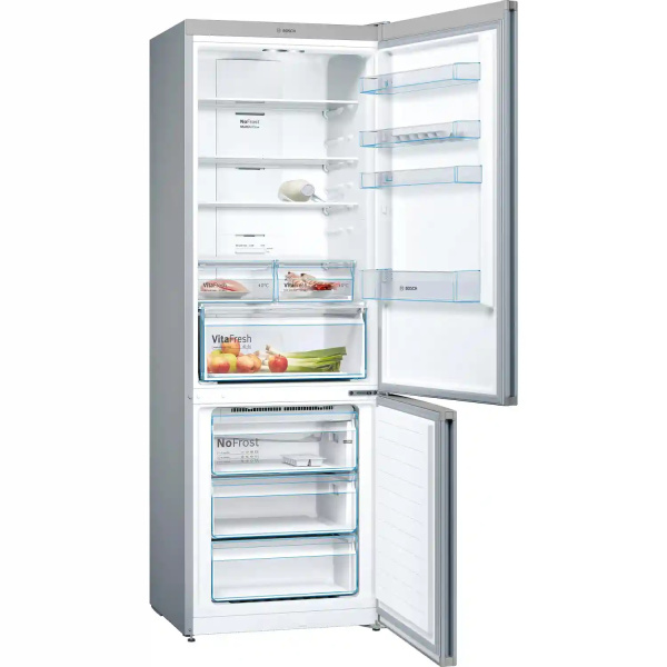 BOSCH KGN49XI30U — это вместительный и технологичный холодильник, который обеспечит идеальные условия для хранения ваших продуктов. Благодаря увеличенной ширине (70 см) в нем легко разместятся крупные продукты и большие запасы. Система NoFrost избавит вас от необходимости размораживания, а VitaFresh сохранит овощи, фрукты, мясо и рыбу свежими в два раза дольше.