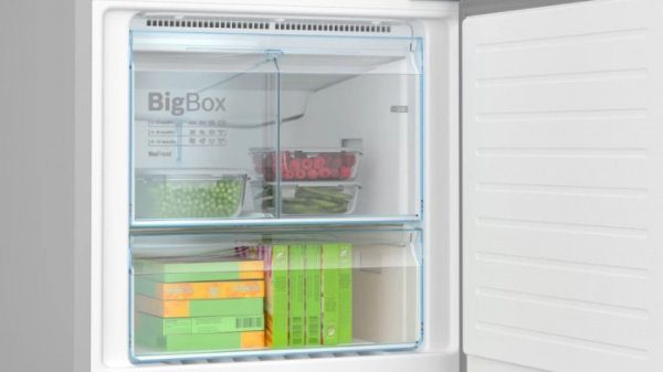 BOSCH KGN56CI30U — это просторный холодильник с увеличенной шириной 70 см и высотой 193 см, идеально подходящий для большой семьи. Благодаря технологии NoFrost, размораживание больше не требуется, а система VitaFresh поддерживает оптимальную влажность, сохраняя свежесть овощей, фруктов, мяса и рыбы в два раза дольше.